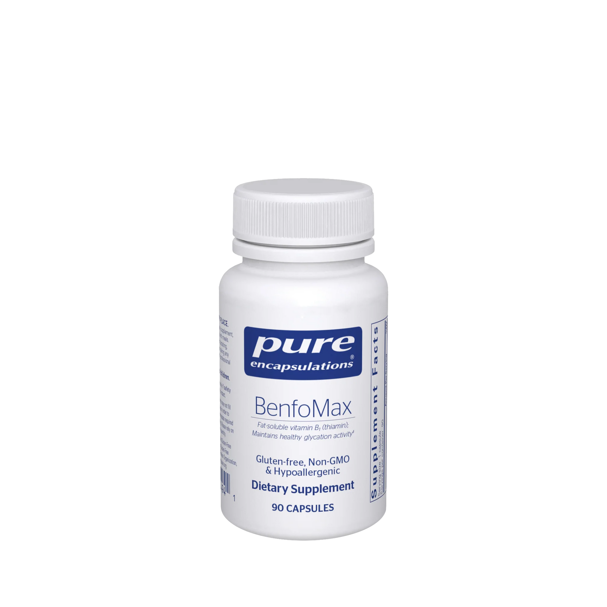 This formula of vitamin B1 plays an important role in vascular, nerve, eye and kidney health, as well as in breaking down glucose. BenfoMax supplement offers a fat-soluble vitamin B1 as the enhanced-retention thiamin derivative, benfotiamine.*