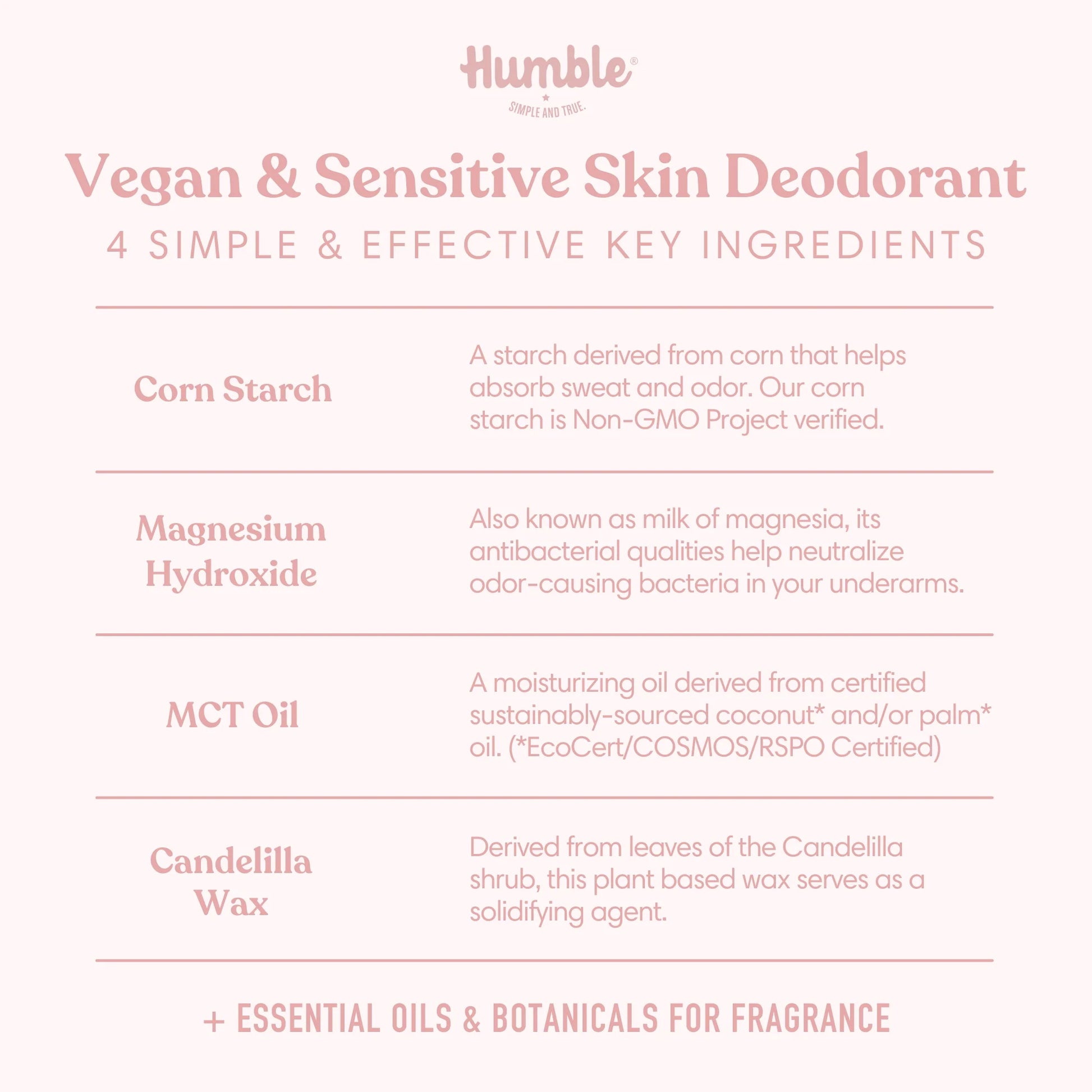 Just simple ingredients, plus botanically-based fragrances. Formulated to absorb and neutralize body odor. Keeps you feeling fresh. Nothing Bad® — no aluminum, alcohol, parabens, dyes, or artificial fragrance.