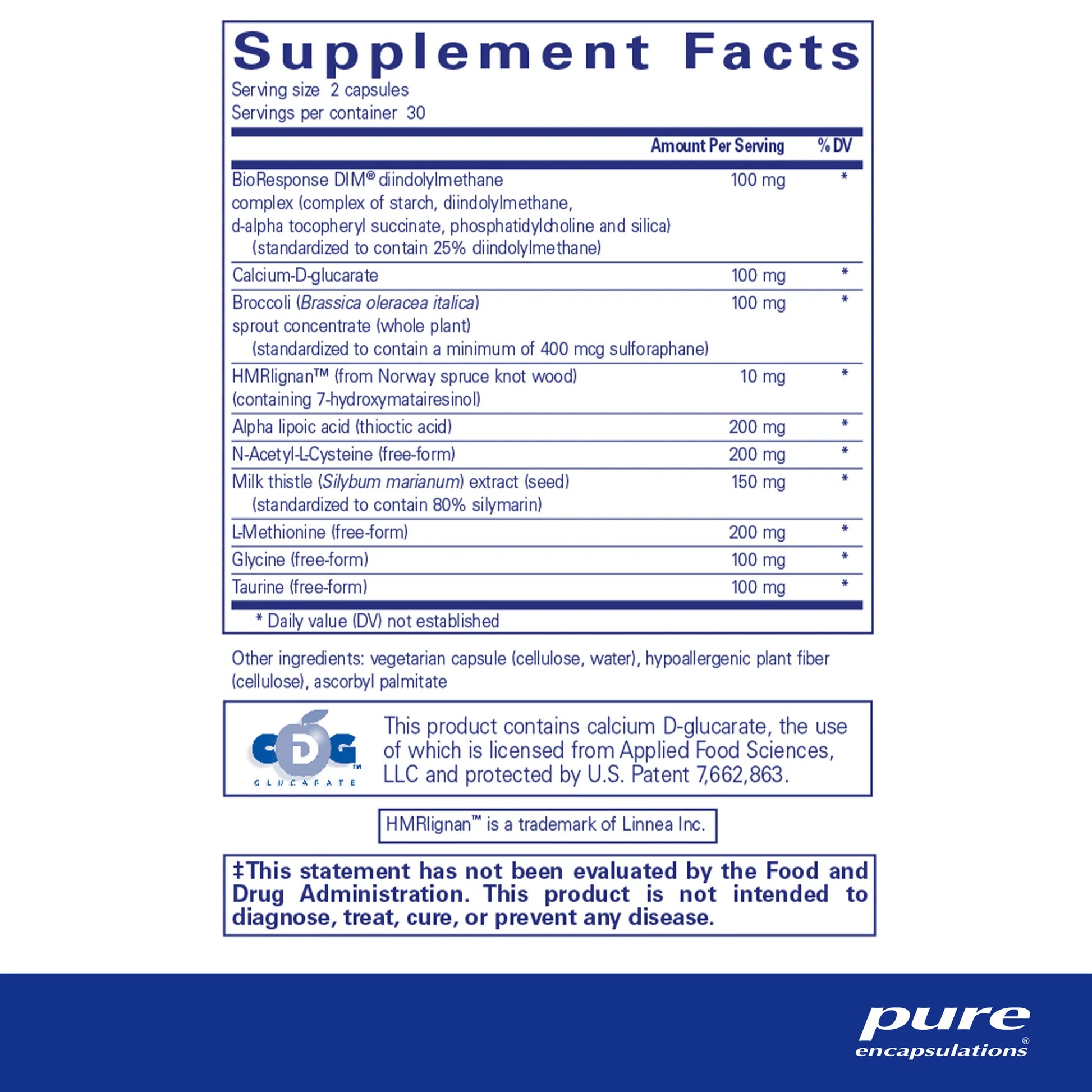 DIM Detox contains indole-3-carbinol and sulforaphane. It also provides BioResponse DIM®, an important metabolite of indole-3-carbinol, which together,help support healthy detoxification, also supporting hormone metabolism and cellular health.*