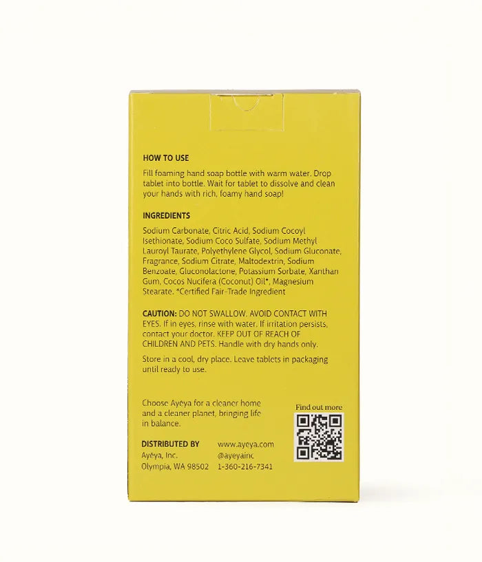 Sodium Carbonate, Citric Acid, Sodium Cocoyl Isethionate, Sodium Coco Sulfate, Sodium Methyl Lauroyl Taurate, Polyethylene Glycol, Sodium Gluconate, Fragrance, Sodium Citrate, Maltodextrin, Sodium Benzoate, Gluconolactone, Potassium Sorbate, Xanthan Gum, Cocos Nucifera (Coconut) Oil*, Magnesium Stearate. *Certified Fair-Trade Ingredient.