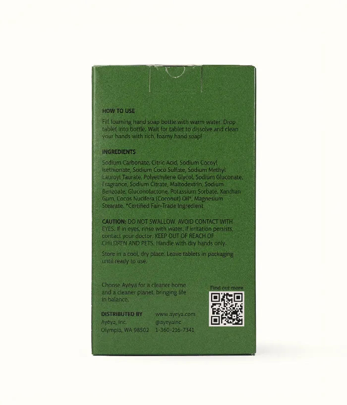 Sodium Carbonate, Citric Acid, Sodium Cocoyl Isethionate, Sodium Coco-Sulfate, Sodium Methyl Lauroyl Taurate, Polyethylene Glycol, Sodium Gluconate, Fragrance, Sodium Citrate, Maltodextrin, Sodium Benzoate, Gluconolactone, Potassium Sorbate, Xanthan Gum, Cocos Nucifera (Coconut) Oil*, Magnesium Stearate. *Certified Fair-Trade Ingredient