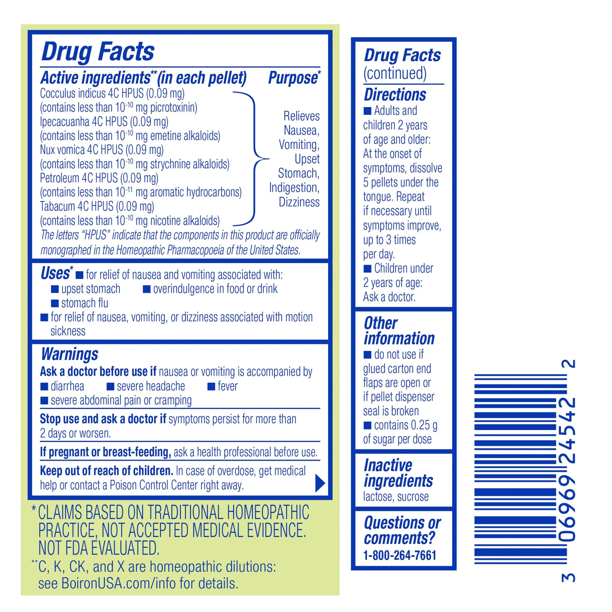 Find multi-symptom upset stomach relief wherever you go with NauseaCalm On the Go by Boiron. This homeopathic medicine, powered by plant-based and other pure active ingredients, relieves nausea and vomiting from everyday causes.** The meltaway pellets dissolve in your mouth without water, allowing you to act fast against upset stomach, fullness, stomach flu, and motion sickness.** Made for ages 2 and up, NauseaCalm On the Go Pellets are offered in convenient, portable tubes for relief that travels with you.